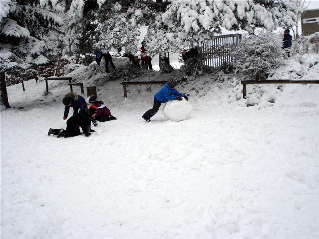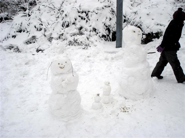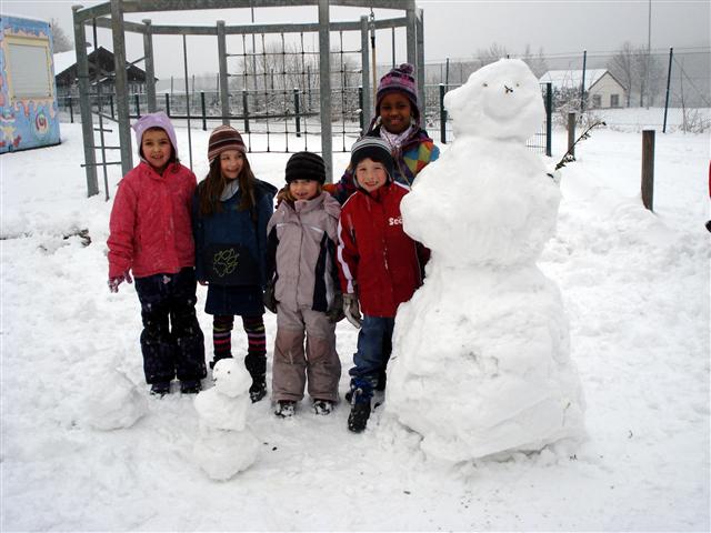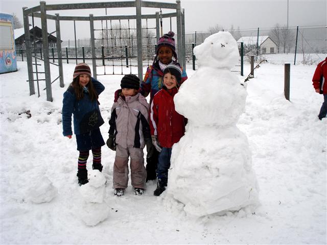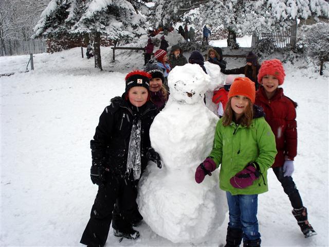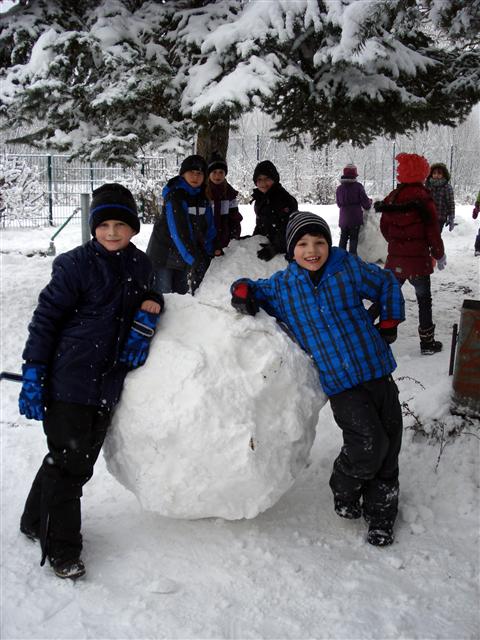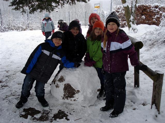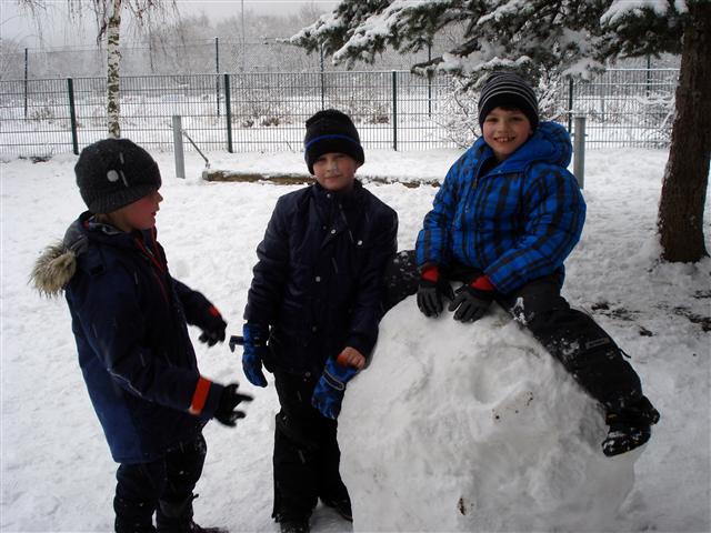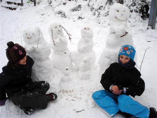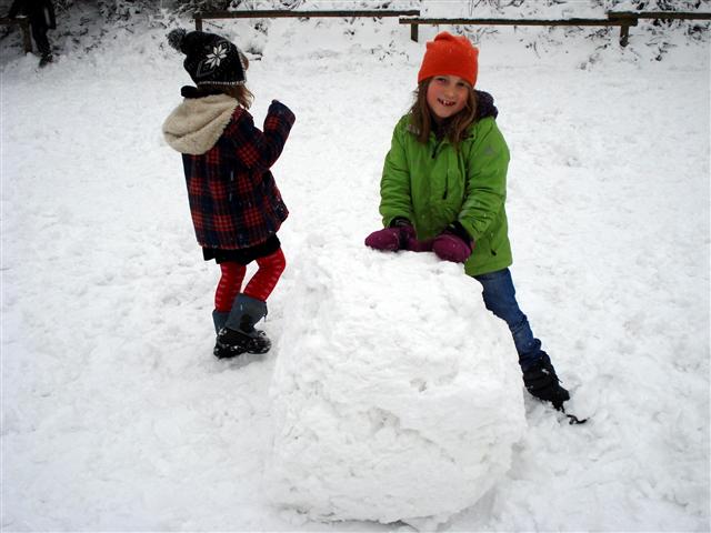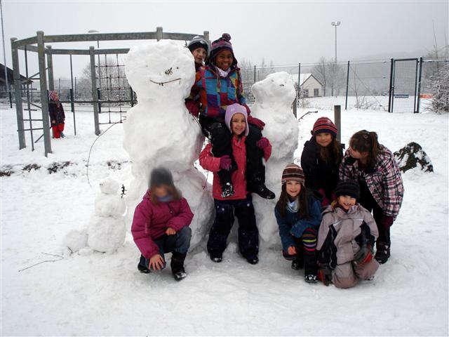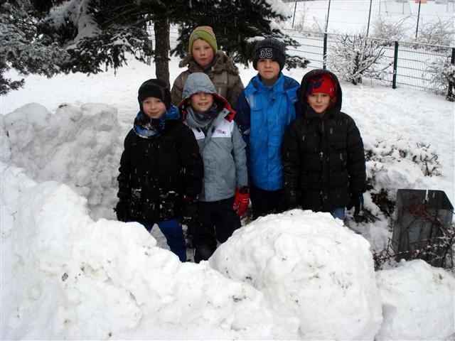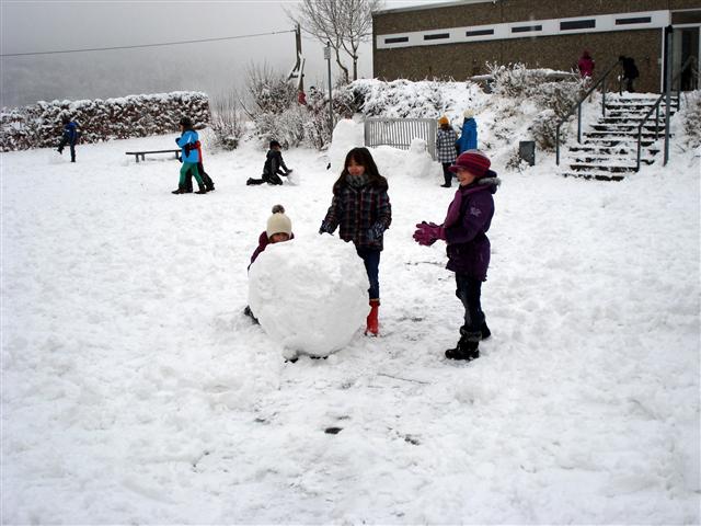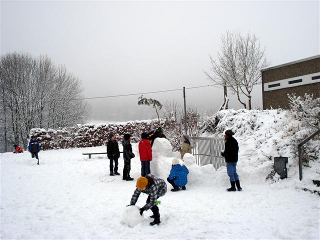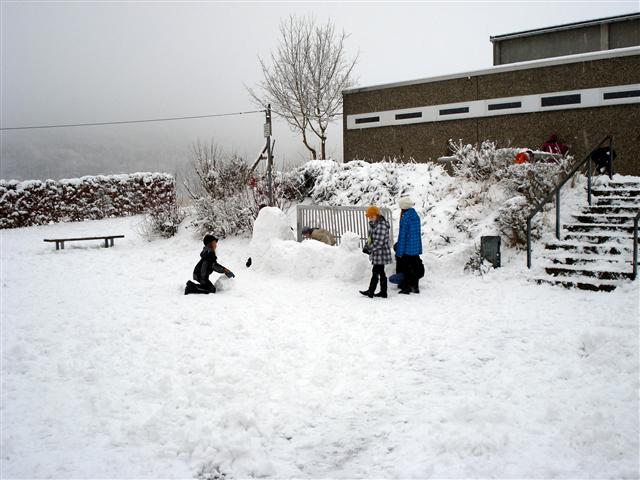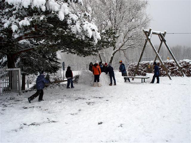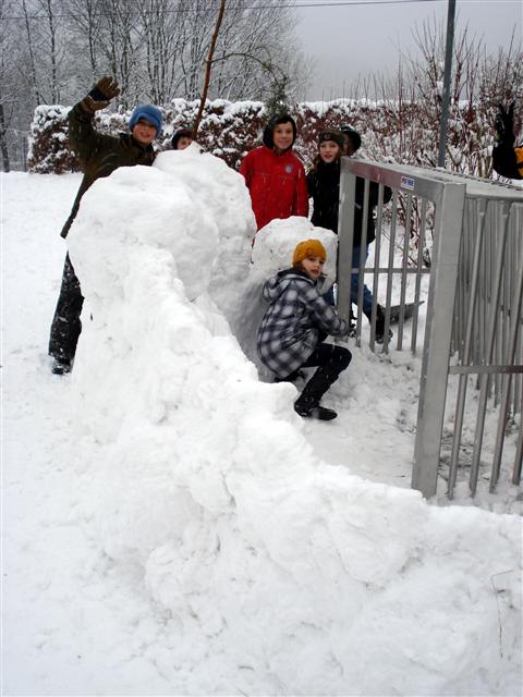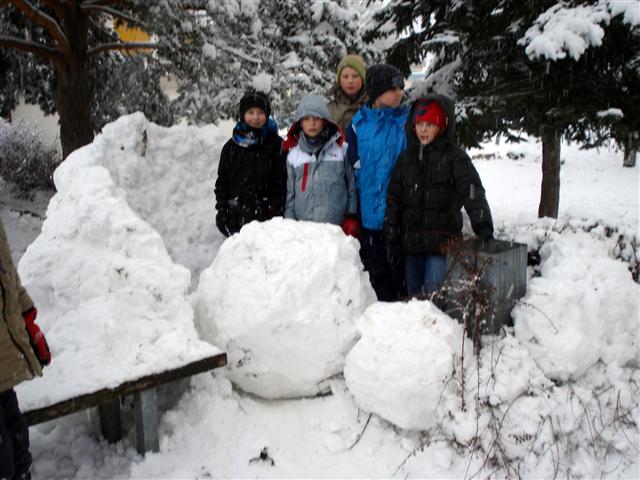 Es wurden nicht nur einzelne Schneemänner, sondern ganze Schneefamilien gebaut. Auch richtige Festungen rund um die Fußballtore wurden aus Schnee gemauert.