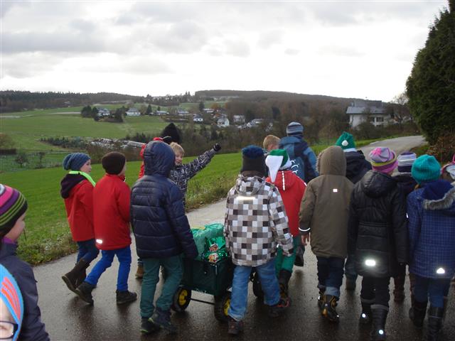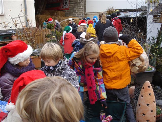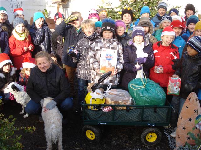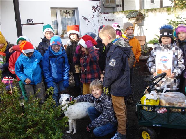 Das war der Wunsch unserer Schulkinder, und so machten sie sich, mit roten Nikolausmützen auf dem Kopf, auf den Weg nach Neukirchen zum Gnadenhof Anna. Der mitgeführte Bollerwagen war schwer beladen mit Hunde- und Katzenfutter, getrocknetem Brot, Käfigstreu und diversen Leckerli.