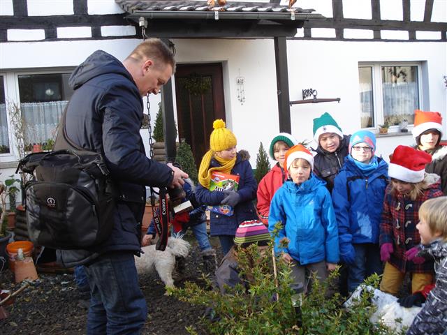 Zwischendurch konnten sich die Kinder mit Plätzchen und heißem Kakao stärken, den Frau Schneider für alle vorbereitet hatte. Anschließend konnten die Kinder Fragen stellen und erfuhren so einiges über die Herkunft der Tiere, über die Pflege und auch über die Probleme, die manchmal zu bewältigen sind.