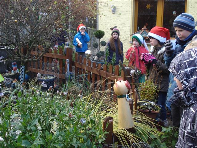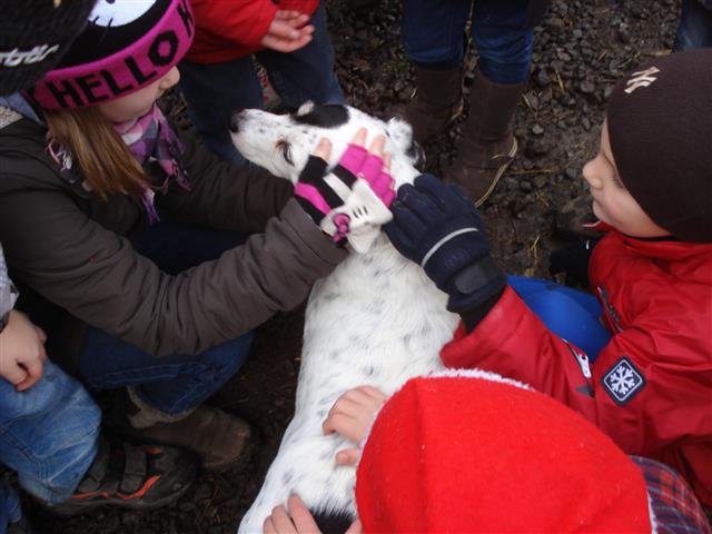 Schon auf dem Weg nach Neukirchen wurden Nikolauslieder gesungen. Im Gnadenhof angekommen, wurden die Kinder herzlich von Heidi Schneider begrüßt. Auch einige kleine Hunde schienen sich über den Besuch sehr zu freuen. „Pirat“ und „Lucy“ eroberten sofort die Herzen der Kinder. Andreas, Wiktoria und Patrick hatten den meisten Spaß mit den Enten, Amelie fand die Katzen süß und Lena hätte sich am liebsten eins der vielen Kaninchen mitgenommen.