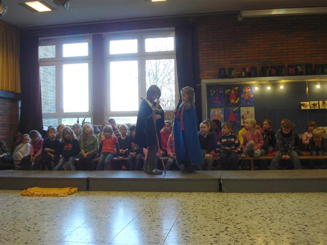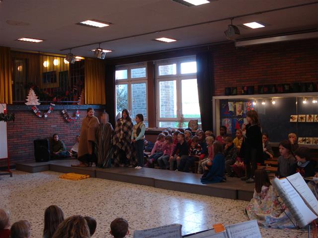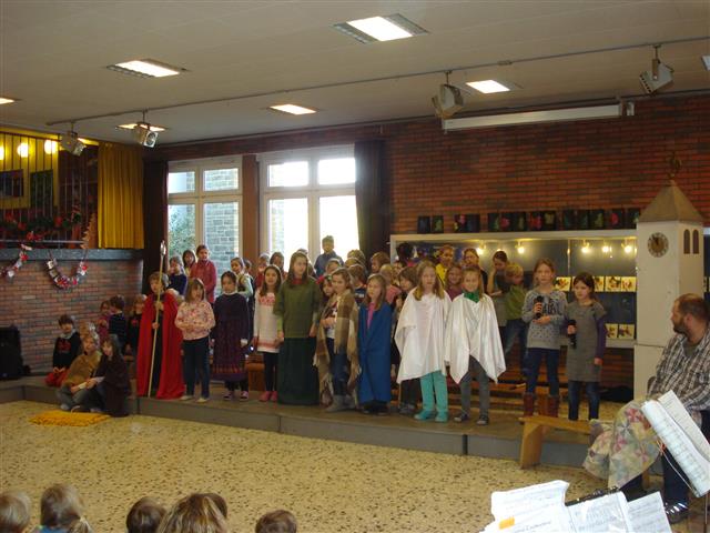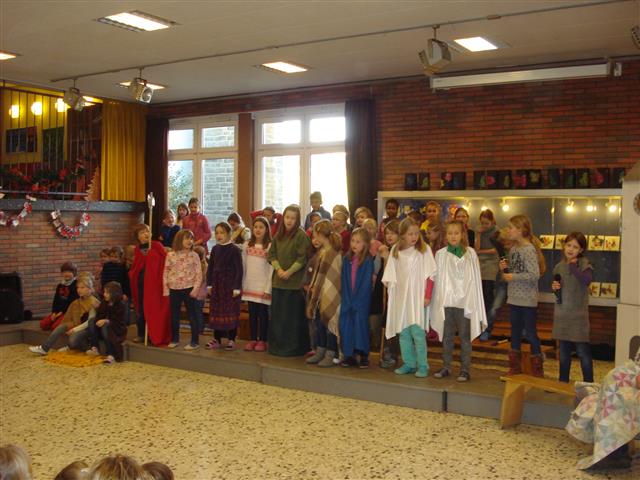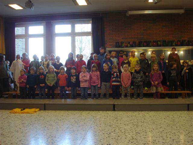Unter Leitung von Frau Finke und Frau Kühn erzählten die Theaterkinder und die Chorkinder der KGS Merzbach in diesem Jahr die Weihnachtsgeschichte musikalisch. Als Gäste begrüßten wir die Maxis der Kindertagesstätten Schatzinsel, Spielbude und Sumsemann. Unser Dank gilt Herrn Martin Bohle, der die Rolle des Erzählers übernommen hat.