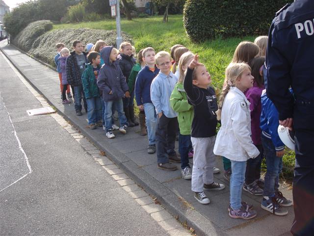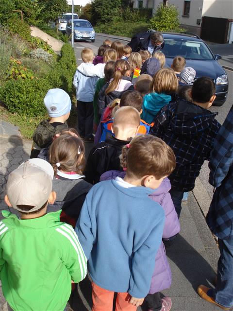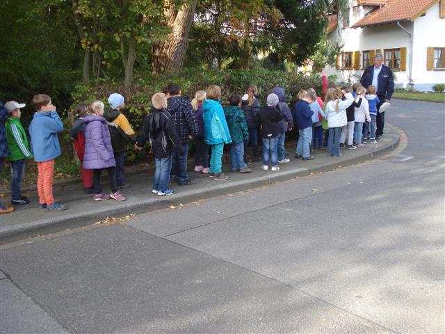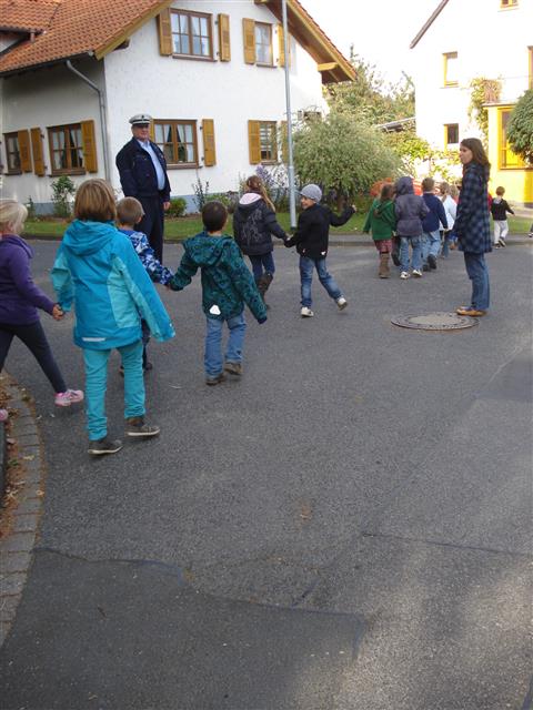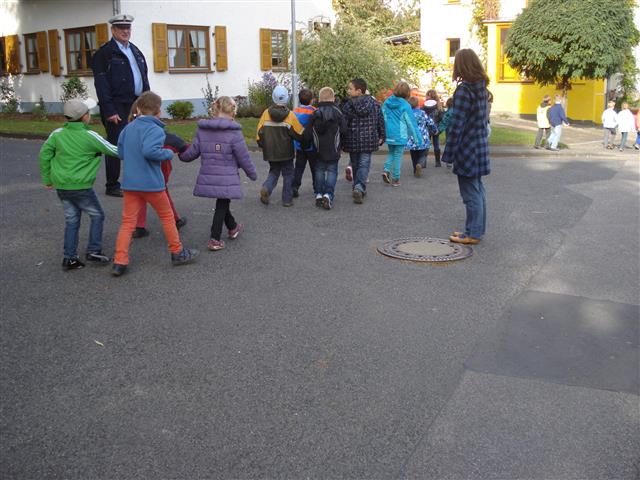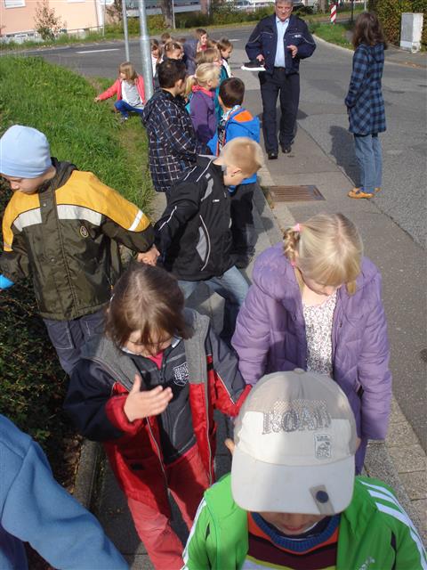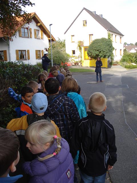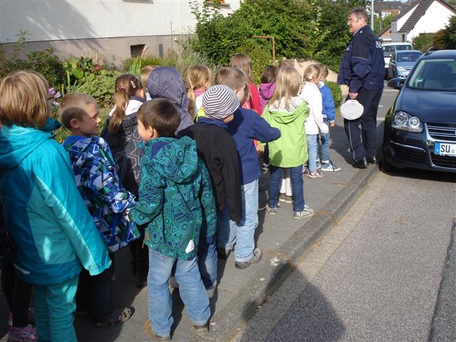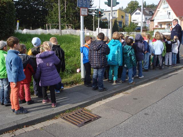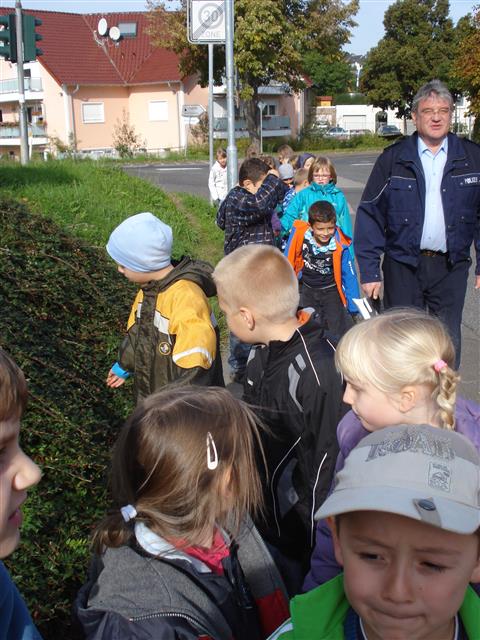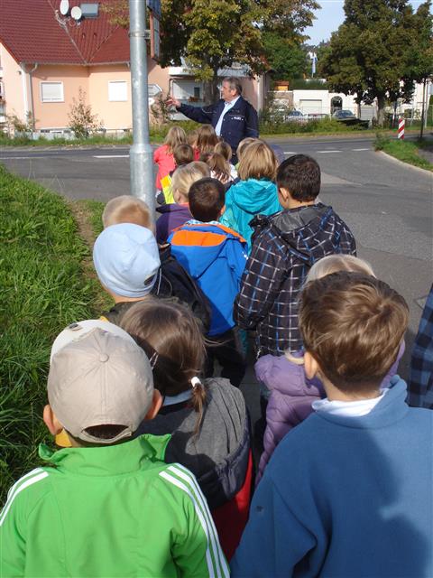 In diesem Schuljahr konnten sich die Kinder der 1. Klasse am Mittwoch, 02.10.2013 über den Besuch des Polizisten Herrn Seifer freuen. Zusammen mit Frau Kühn machten sich alle auf den Weg zur Ampel und lernten dabei, wie man sich richtig und sicher im Straßenverkehr verhält.