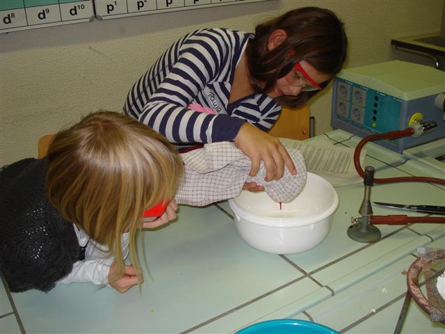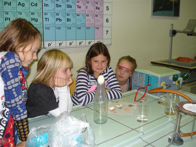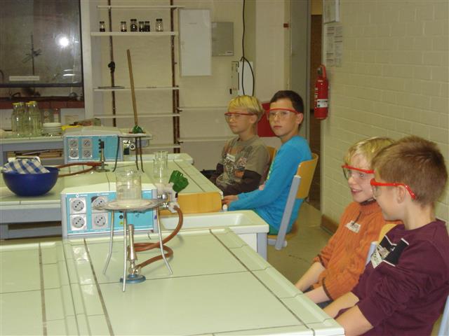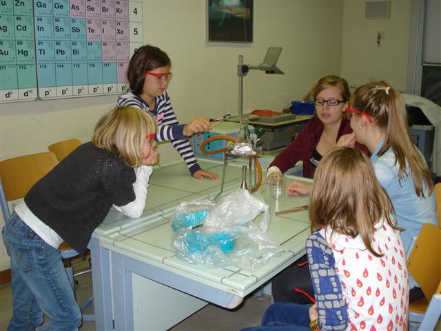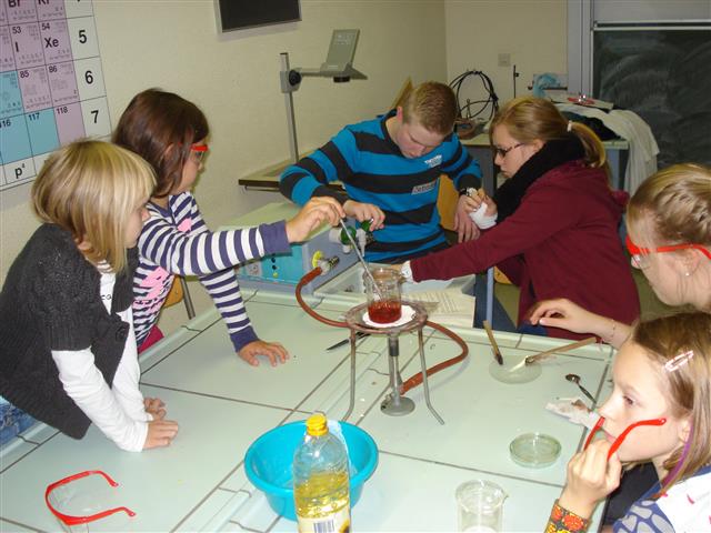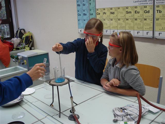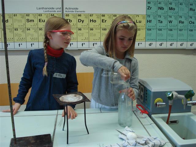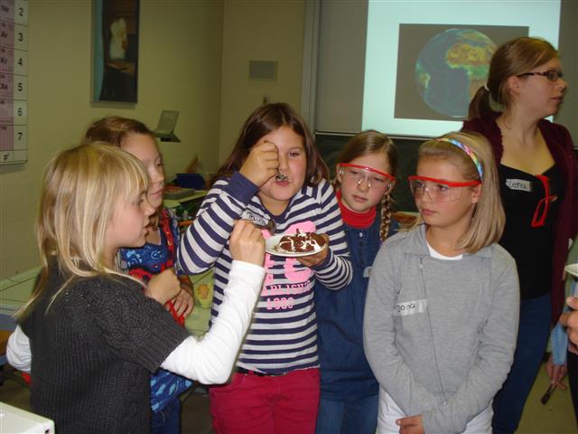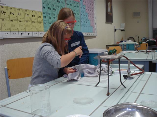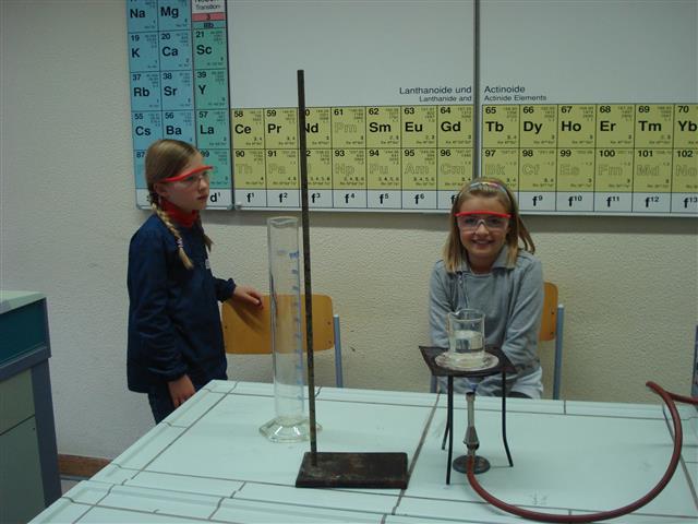 In Kooperation mit dem Städtischen Gymnasium Rheinbach erfuhren Kinder der 4. Klasse zusammen mit Frau Bureš im Labor Zusammenhänge zwischen Wetterphänomenen wie Hitze und Inhalten des täglichen Lebens. So gingen sie den Fragen nach