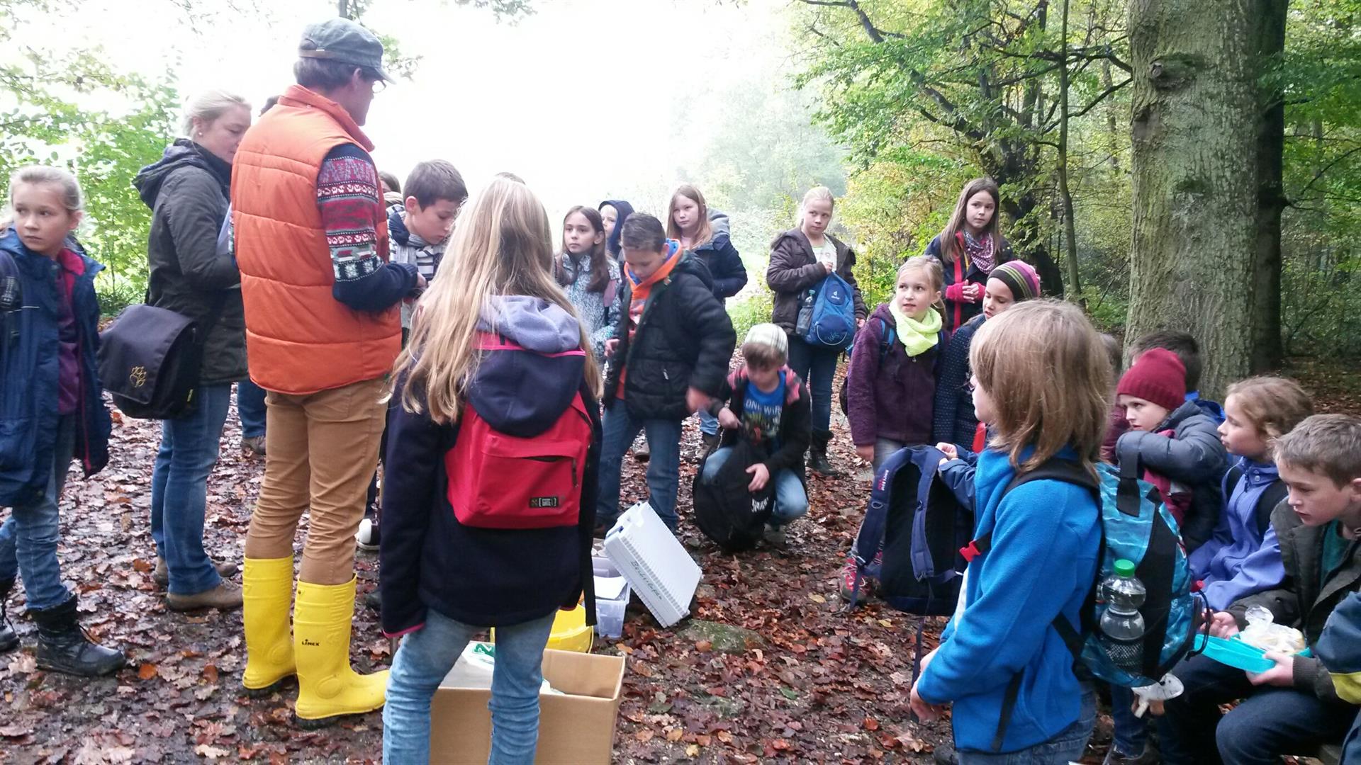 Gemeinsam unternahmen die Kinder der Klasse 1b und die Vorschulkinder des Queckenberger Kindergartens einen Waldspaziergang. Um die Schätze des Waldes genauer erkunden und beobachten zu können, waren viele von ihnen mit Lupe und Fernglas ausgestattet.