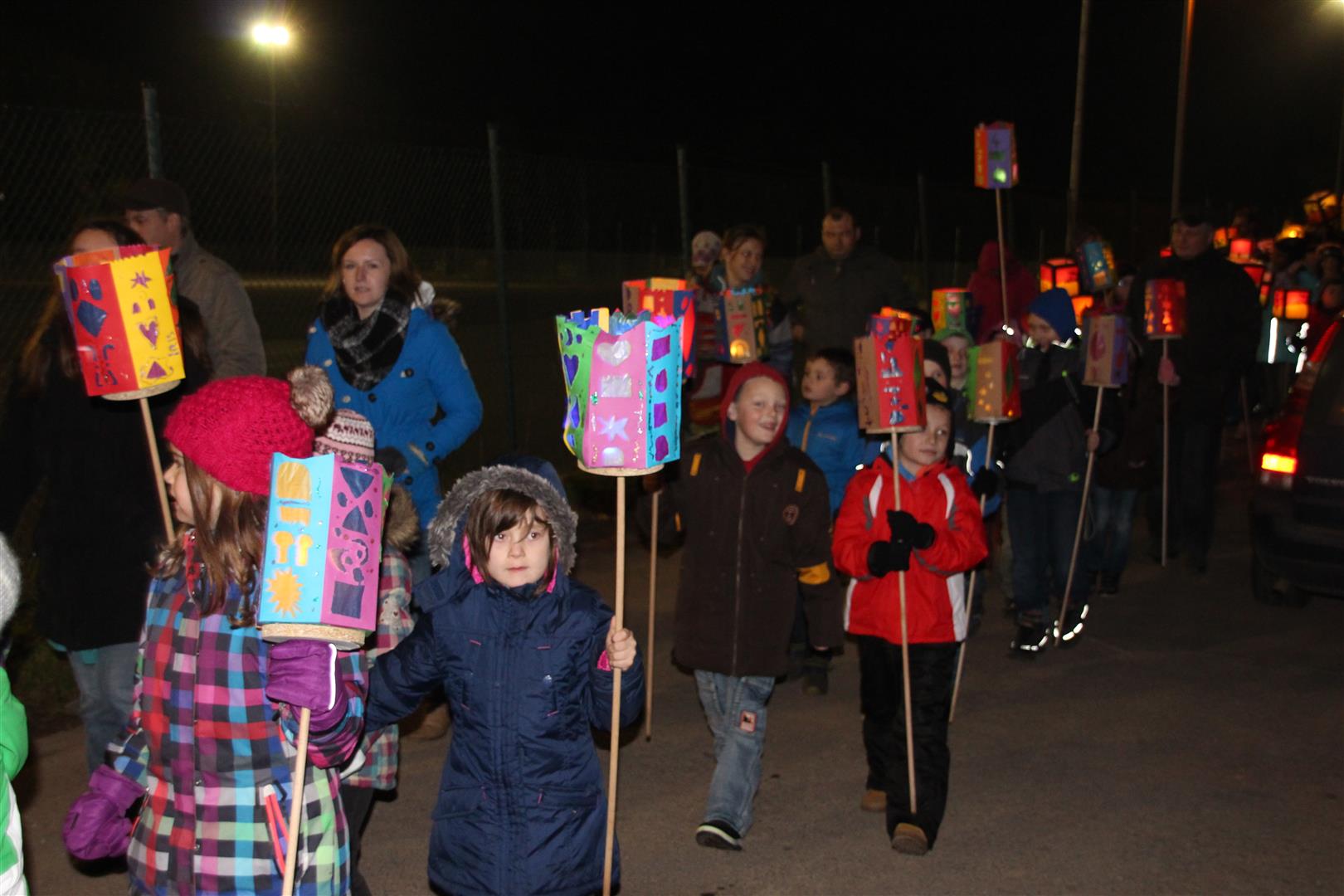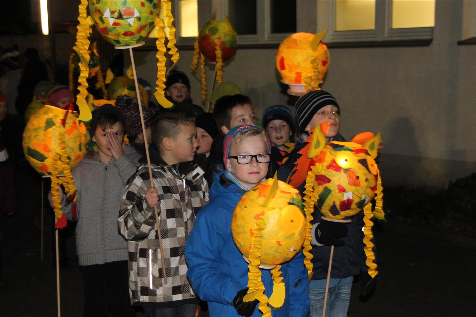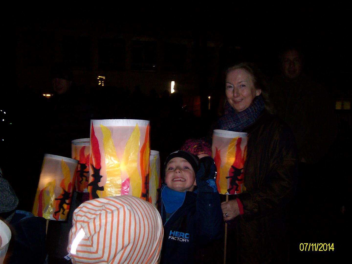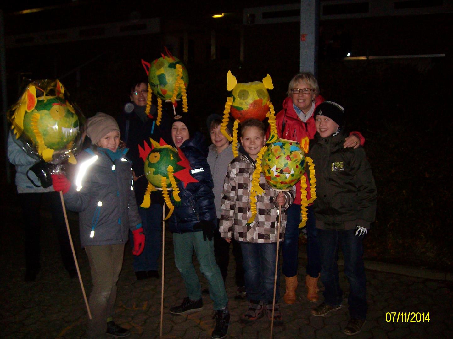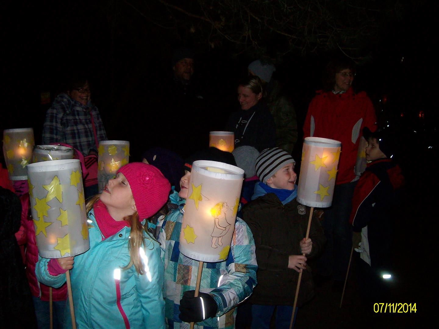 Am 7. November 2014 fand unser Schulmartinszug statt. Auch in diesem Jahr ist die Kindertagesstätte „Die Schatzinsel" aus Neukirchen bei uns mitgelaufen. Sie führte den Zug an. Mit den vielen selbstgebastelten Laternen zum Thema Märchen trugen alle Kinder zu einem farbenprächtigen Bild bei. Nach dem Zug versammelten sich alle um das Martinsfeuer, erhielten ihren Wecken und trafen sich danach zum gemütlichen Beisammensein auf dem unteren Schulhof. Der Förderverein sorgte - wie jedes Jahr - für das leibliche Wohl mit Wecken, Kakao, Glühwein und Grillwurst.