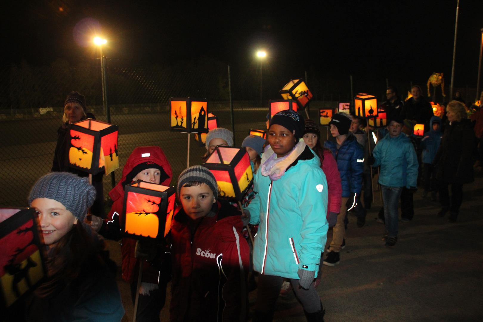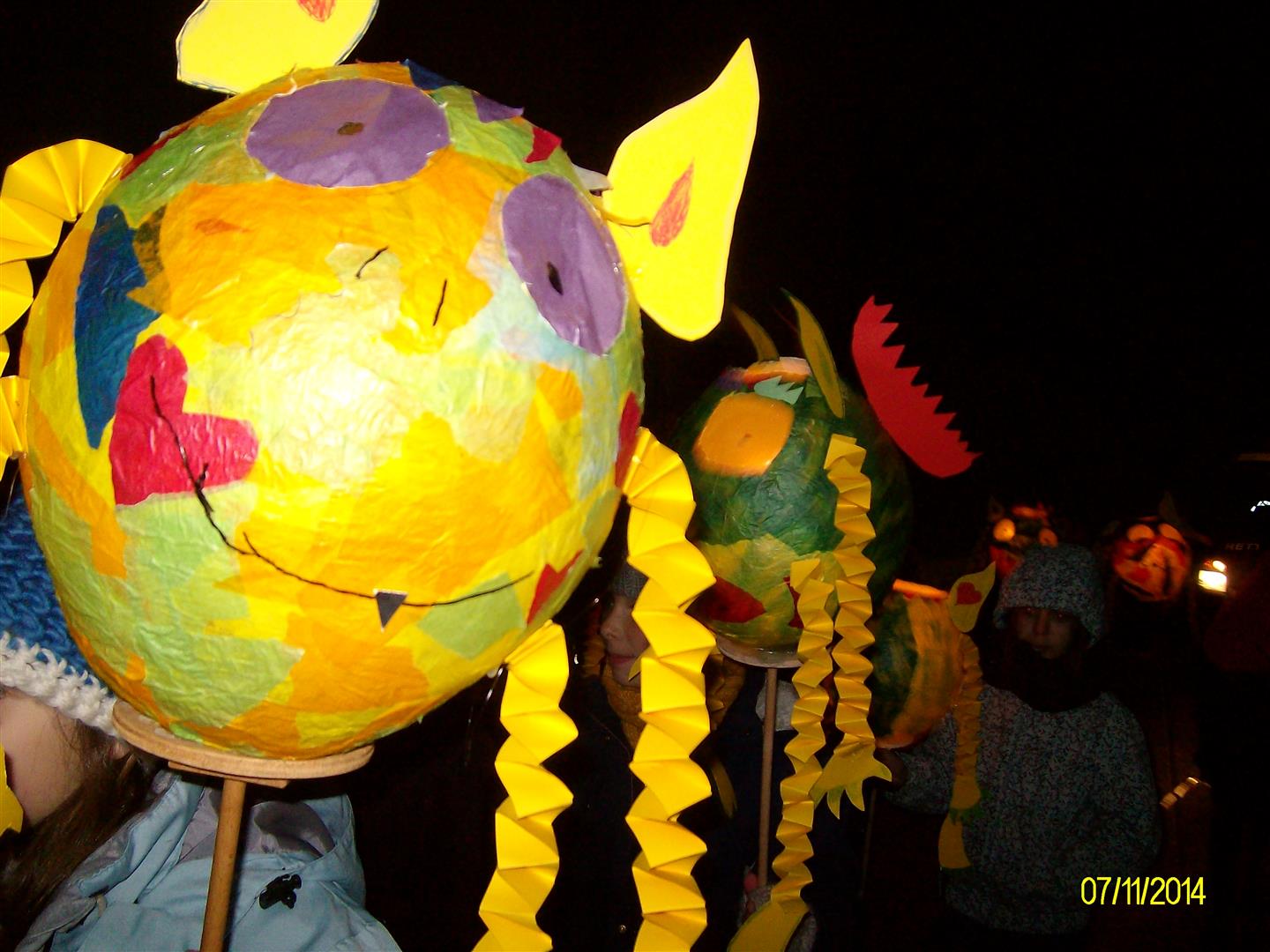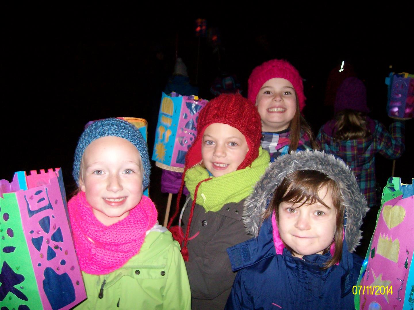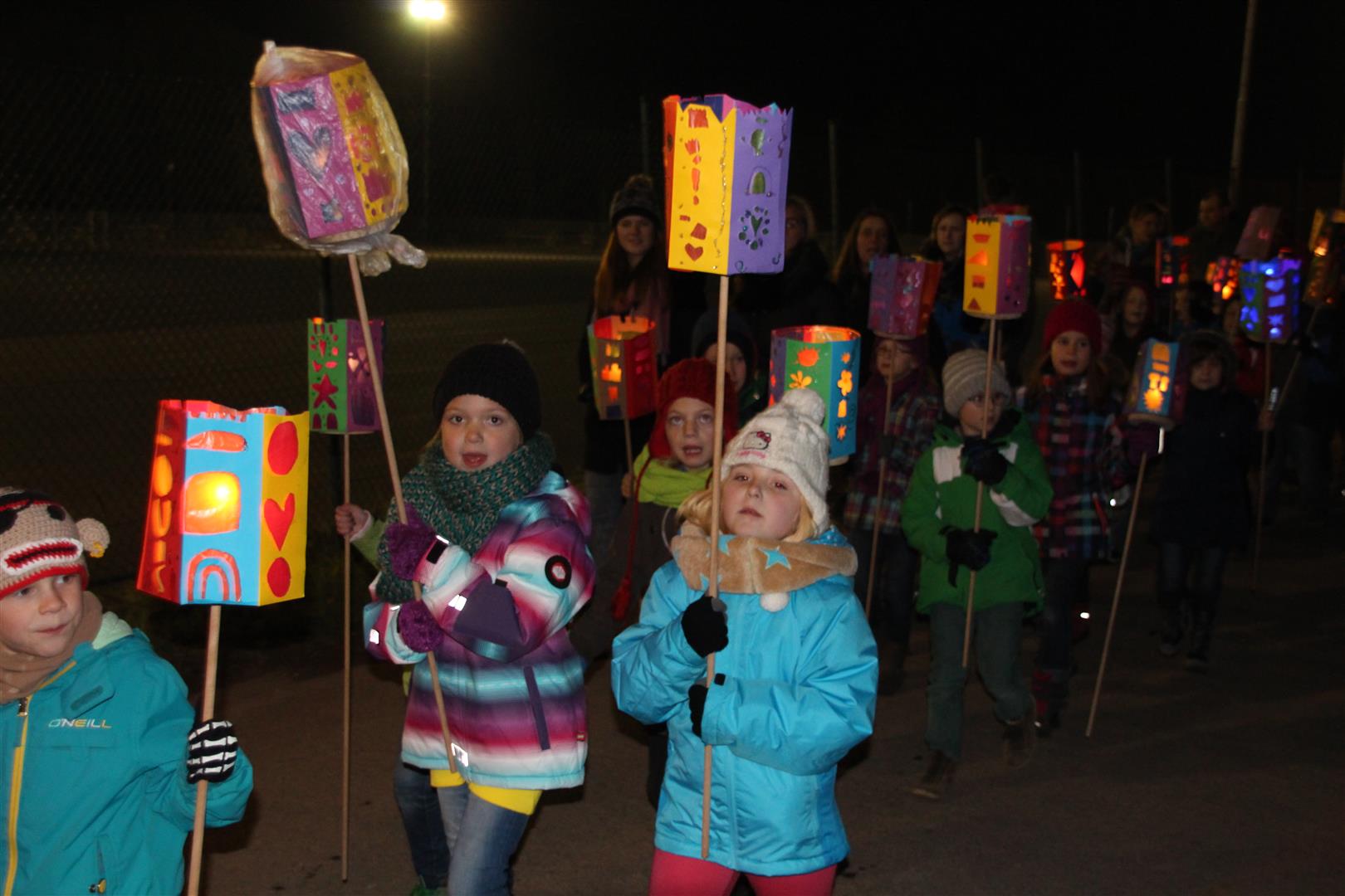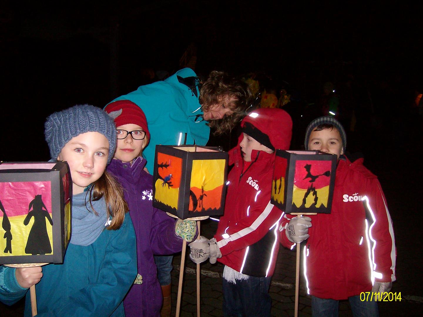 Am 7. November 2014 fand unser Schulmartinszug statt. Auch in diesem Jahr ist die Kindertagesstätte „Die Schatzinsel" aus Neukirchen bei uns mitgelaufen. Sie führte den Zug an. Mit den vielen selbstgebastelten Laternen zum Thema Märchen trugen alle Kinder zu einem farbenprächtigen Bild bei. Nach dem Zug versammelten sich alle um das Martinsfeuer, erhielten ihren Wecken und trafen sich danach zum gemütlichen Beisammensein auf dem unteren Schulhof. Der Förderverein sorgte - wie jedes Jahr - für das leibliche Wohl mit Wecken, Kakao, Glühwein und Grillwurst.
