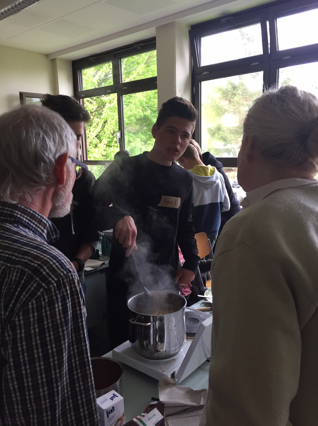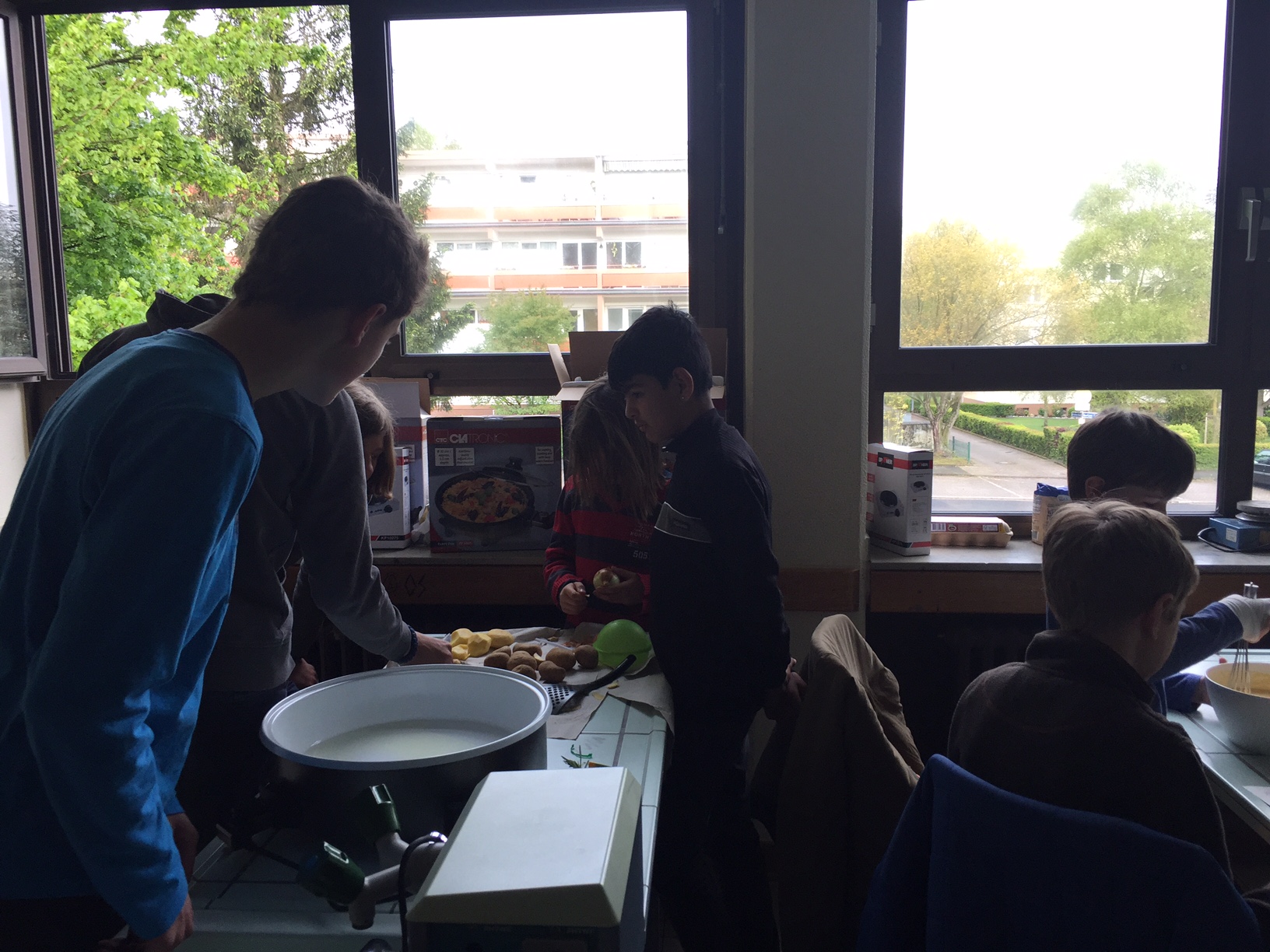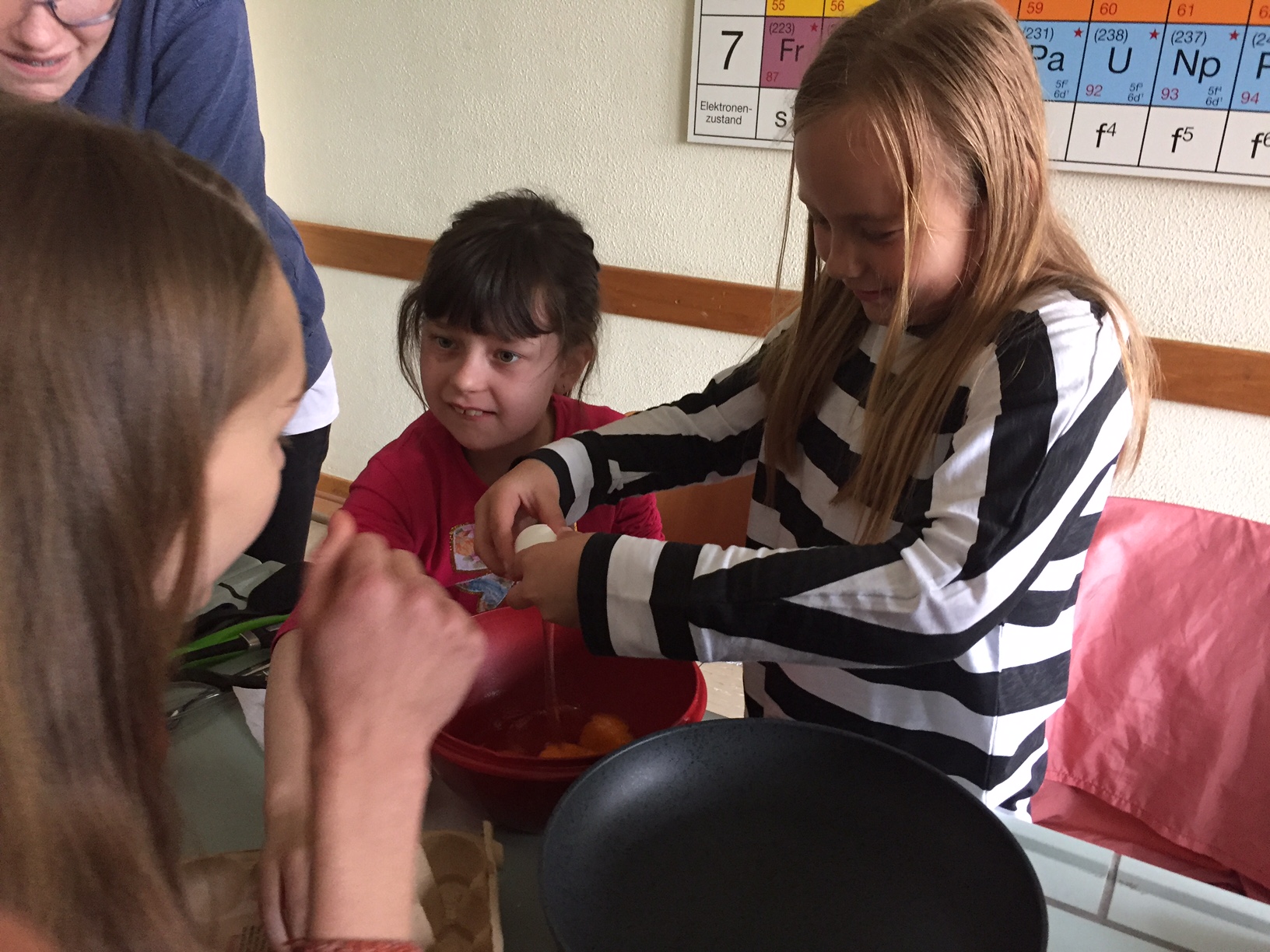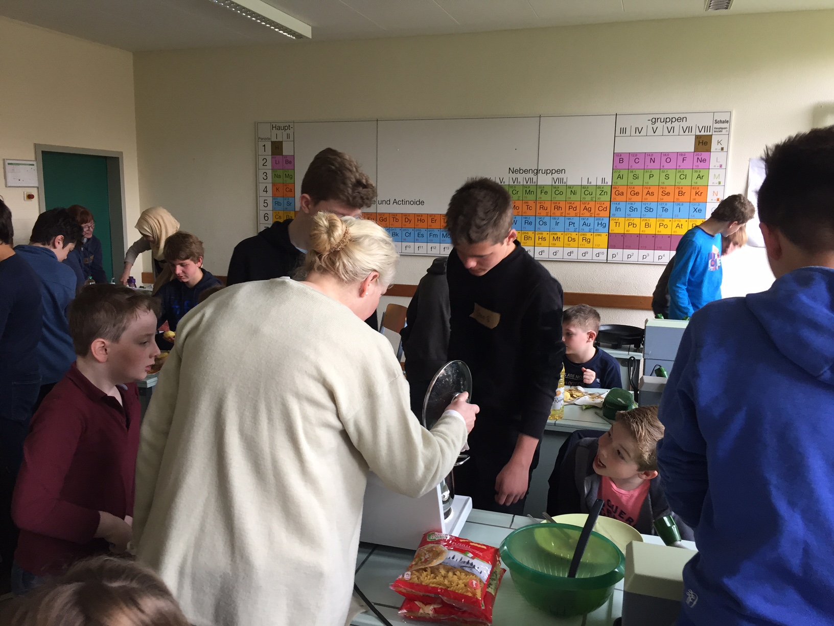 Am 3.5. war die Klasse 3a im Städtischen Gymnasium zu Gast und nahm an dem Projekt "Kochen mit Kräutern" teil. Zunächst hielten ein paar Kinder der Klasse 8 ein tolles Referat zum Thema Nutzpflanzen. Dann bekamen die 3.-Klässler jeweils einen Partner aus der Klasse acht und dann ging es auch schon an die Kochtöpfe. Es gab Bratkartoffeln, Nudeln mit Sauce und auch Pfannekuchen - alles mit Kräutern.