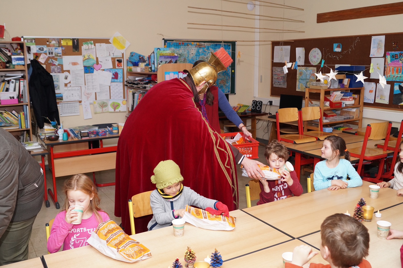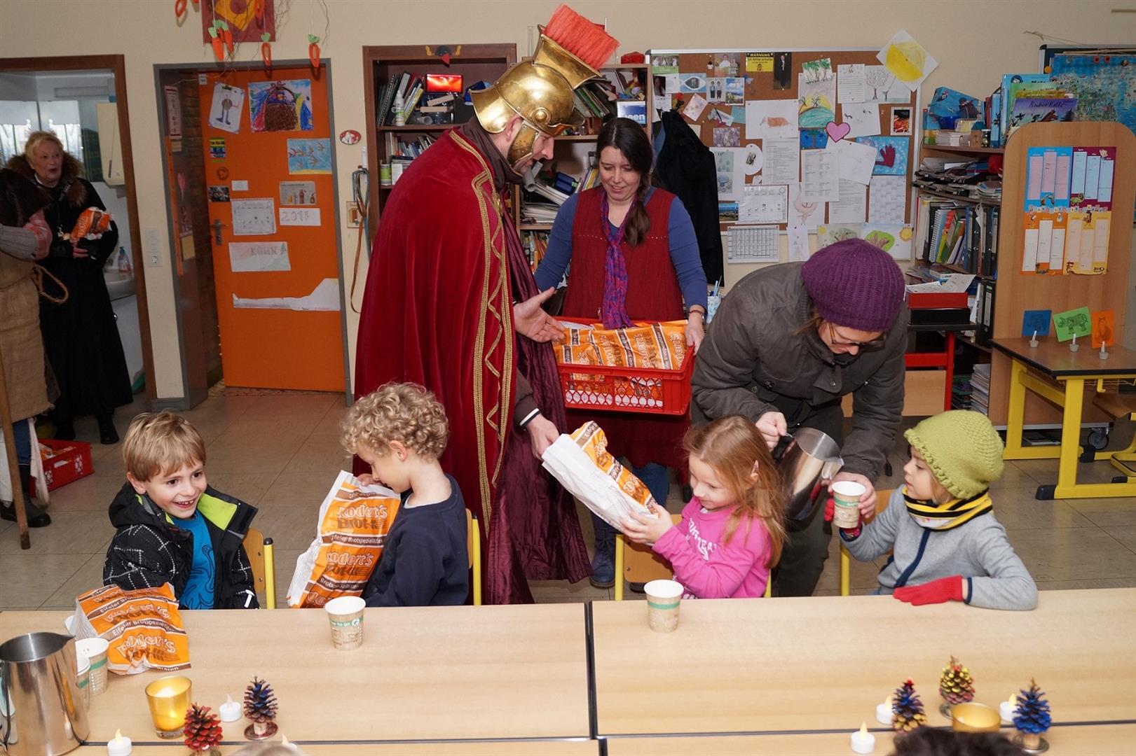 Anschließend trafen sich die Klassen noch einmal in ihren Räumen und warteten bei Kerzenschein und Geschichten auf die Verteilung der Wecken durch St. Martin.