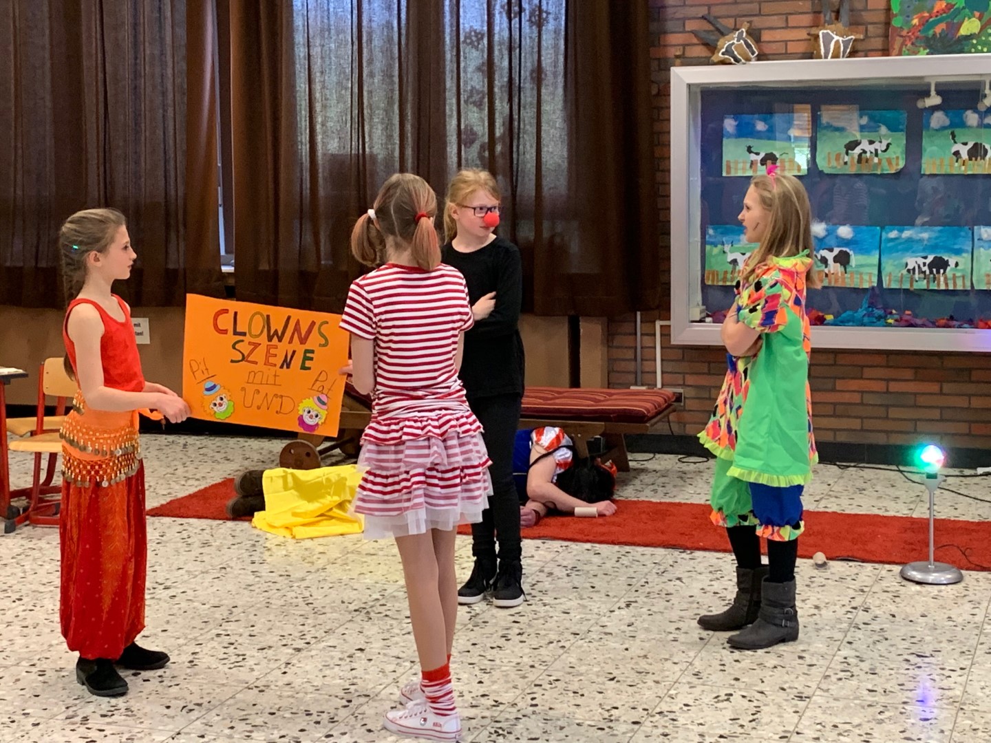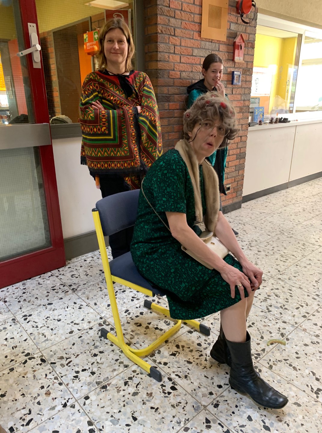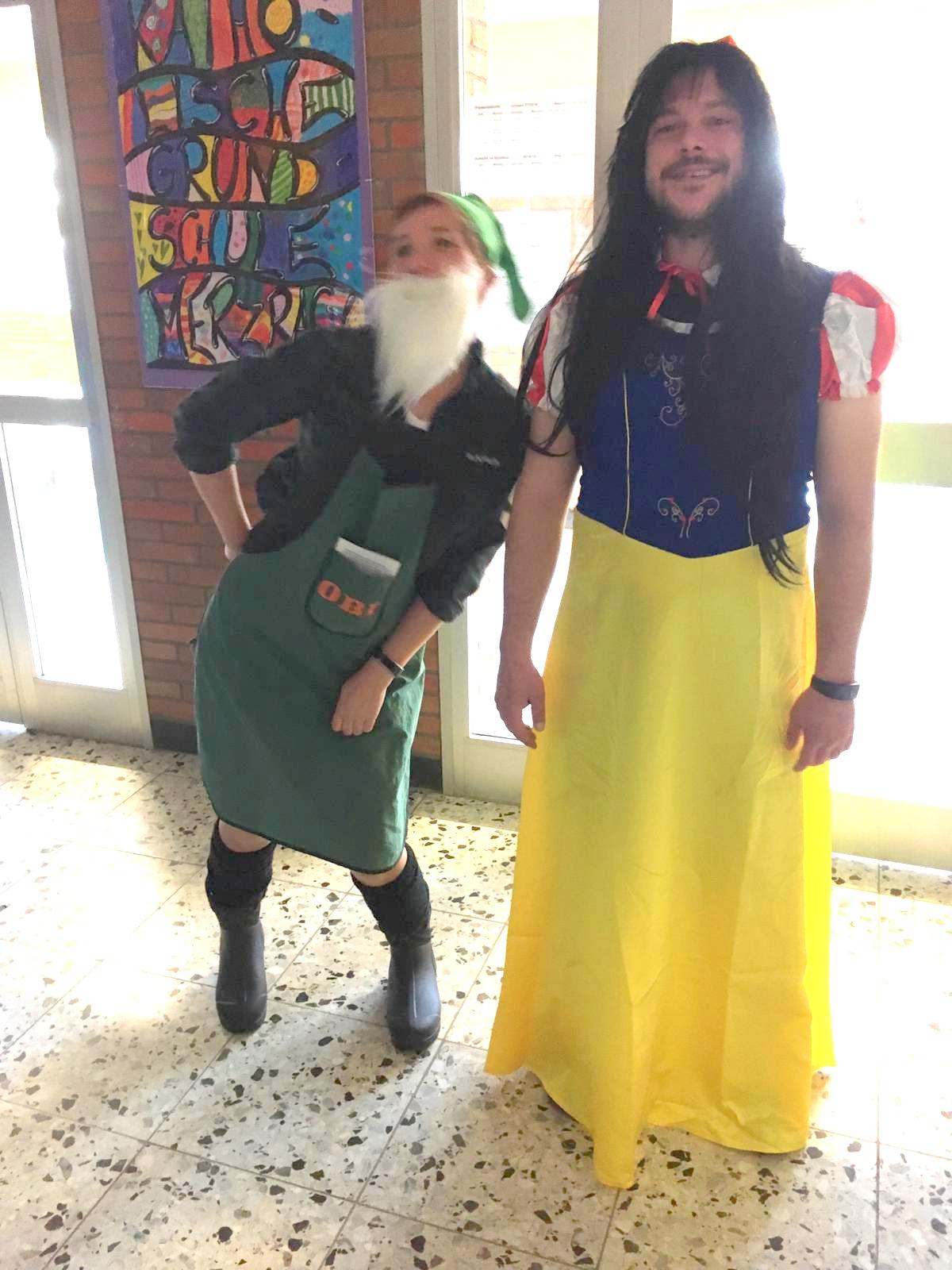 Unsere diesjährige Karnevalsfeier stand ganz unter dem Motto "Schneewittchen und die sieben Zwerge" - auch wenn es am Ende ganze neun Zwerginnen waren. Denn die Lehrerinnen waren in die Zwergenrolle geschlüpft und kümmerten sich um das Schneewittchen alias Herrn Schnalke. Unser Hausmeister Herr Spilles mimte die böse Stiefmutter und Frau Finke die beiden alten Frauen, in die die Stiefmutter sich verwandelt. Was für ein Spaß ;-)