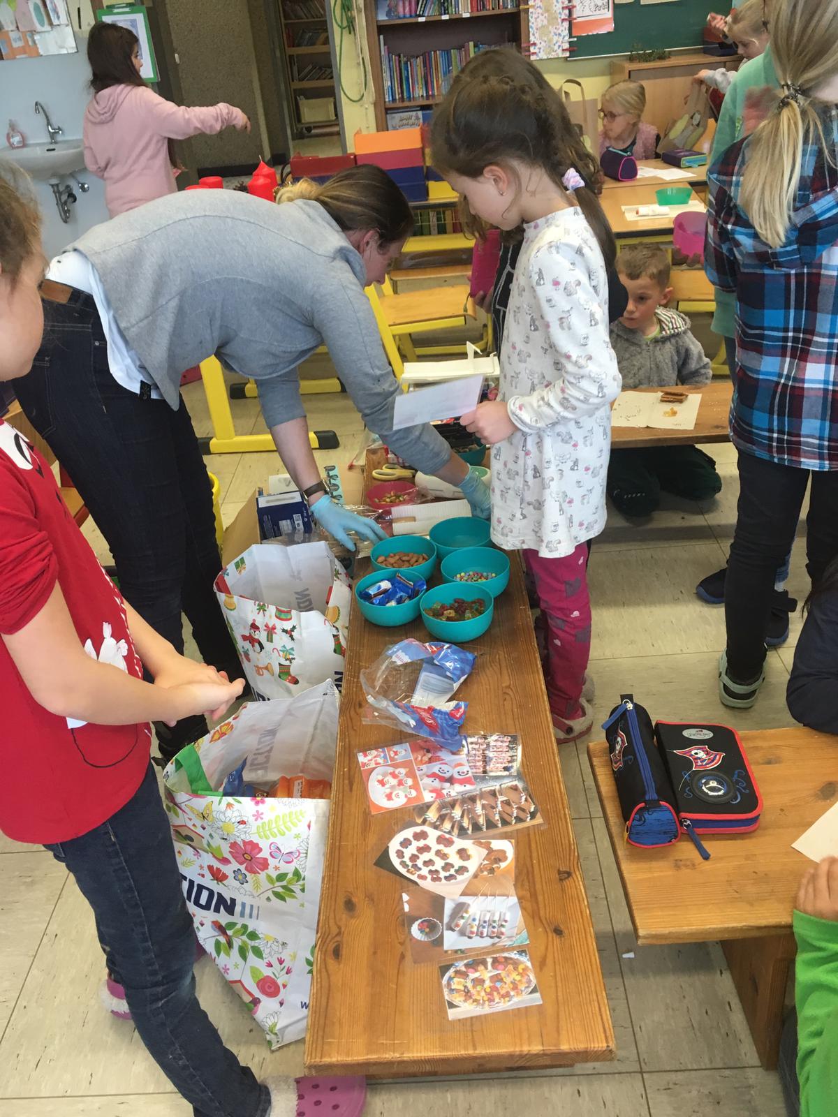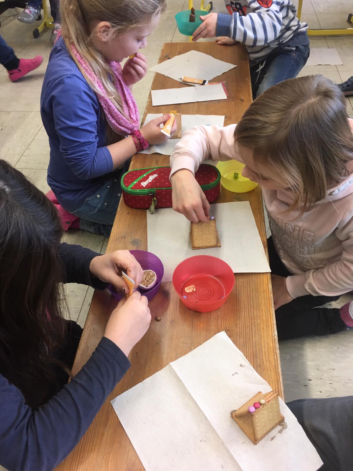 Heute startete wieder unsere alljährliche Lebkuchenwanderung. Während die vierten Klassen vorneweg liefen und die vielen Aufgabenkarten am Wegesrand verteilten, liefen die anderen Klassen zeitversetzt hinterher. An jeder Station gab es verschiedene Aufgaben zu erledigen. Gemeinsamer Treffpunkt war schließlich die Waldkapelle. Dort wurden kräftig Weihnachtslieder gesungen und schließlich und endlich auch Lebkuchen gegessen. Lecker!