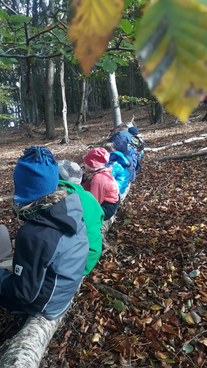 Die Klasse 2a flüchtete vor dem Baulärm in den Wald... Das tat gut!