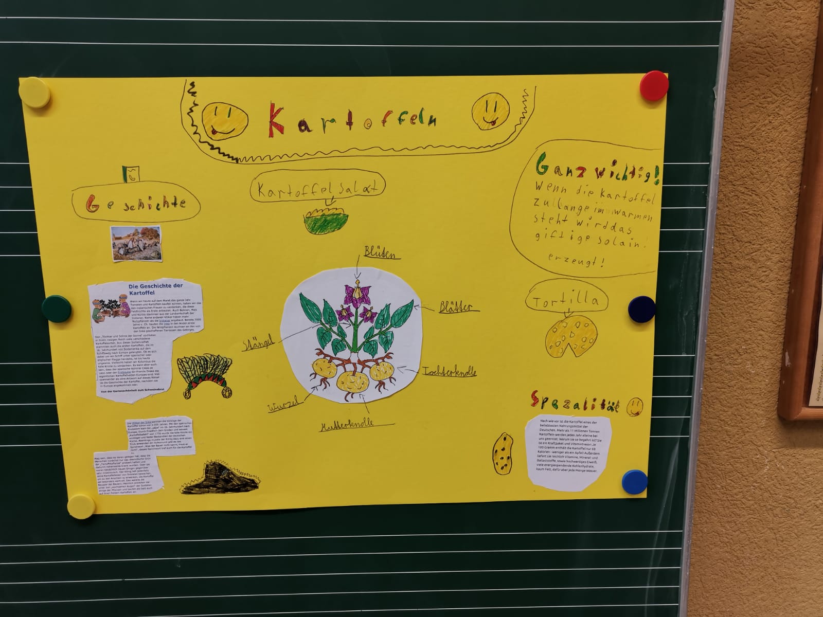 In den letzten Wochen haben sich die Kinder der beiden dritten Klassen mit der tollen Knolle beschäftigt. Da gab es einiges zu beobachten und zu erforschen. Wir haben einen Kartoffelwettbewerb gestartet und gestaunt, wie unterschiedlich die Knollen aussehen können. Mit einem Experiment haben wir herausgefunden, dass Kartoffeln ganz viel Stärke enthalten.