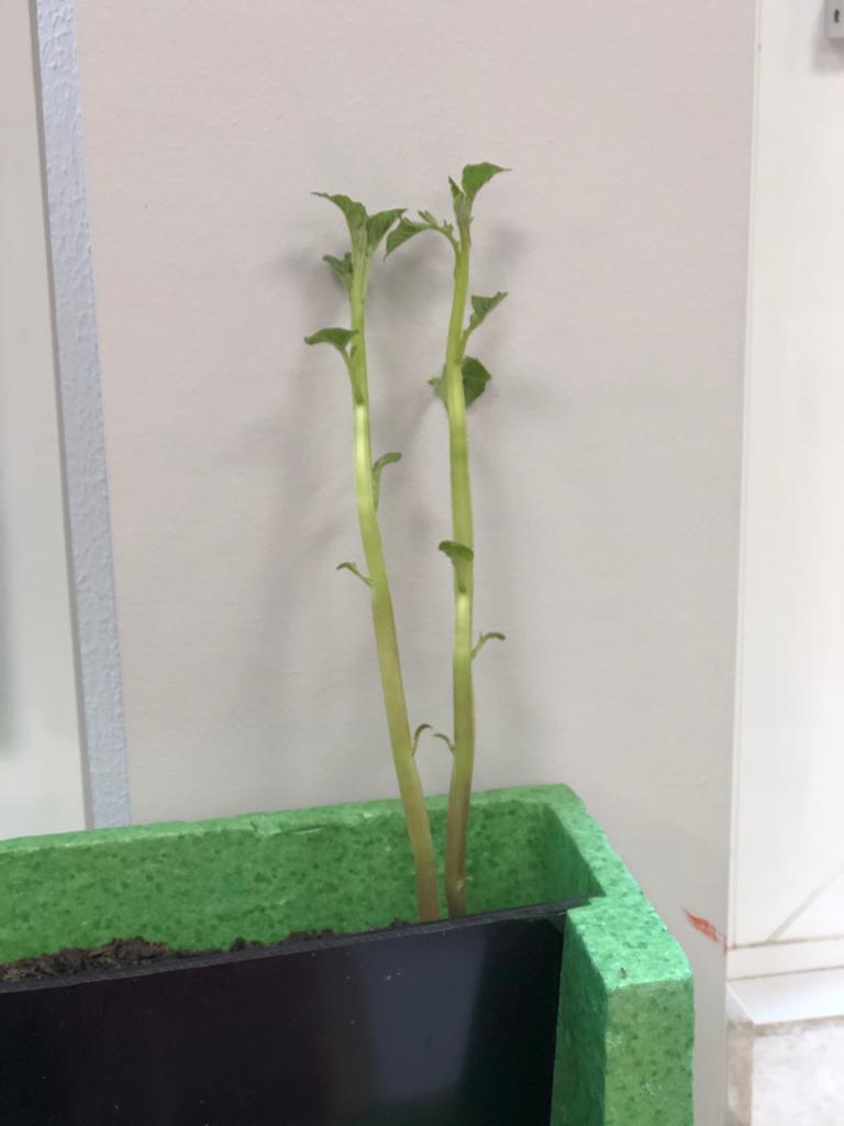 Mit Hilfe eines Wurzelhäuschens konnten wir beobachten, was bei einer Kartoffel sonst unbemerkt unter der Erde passiert. Sie hat Wurzeln gebildet und nach einer Woche ist sie sogar bis an die Oberfläche gekommen und hat Stängel und Blätter entwickelt. Jetzt haben wir eine richtige Kartoffelpflanze. Ob wir sogar bald ernten können?