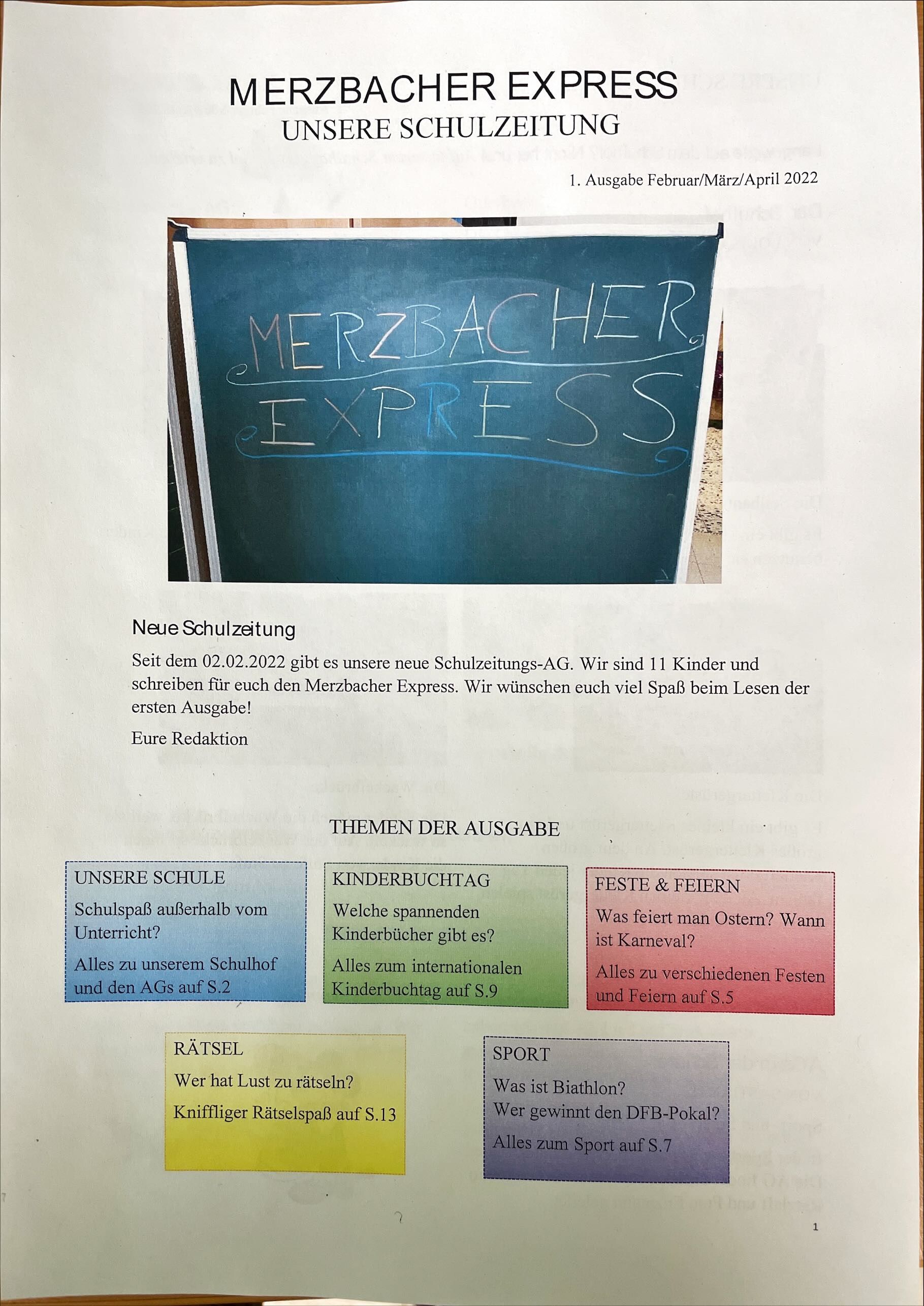 Unsere Schülerzeitung hat ihre erste Ausgabe herausgebracht. Ihr könnt euch gerne bei uns ein Exemplar bestellen. Viel Spaß beim Lesen!
