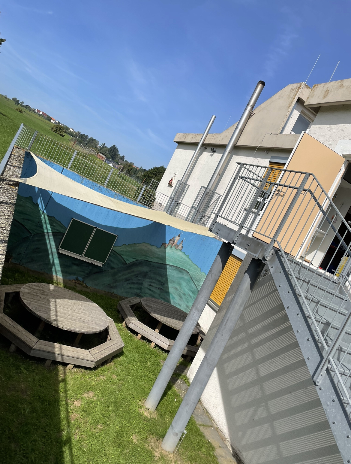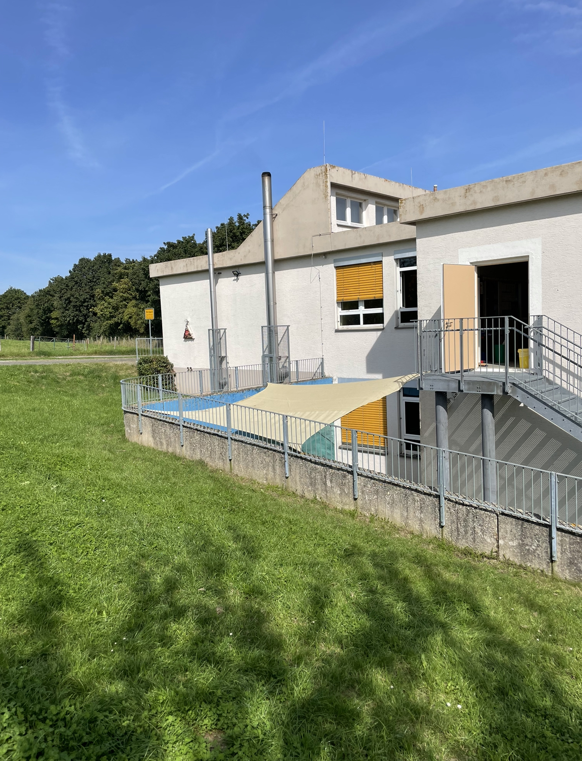 Wir lieben diese sonnigen Tage - für unser grünes Klassenzimmer hat uns Herr Spilles nun ein Sonnensegel montiert, damit wir dort auch wirklich lernen und spielen können.